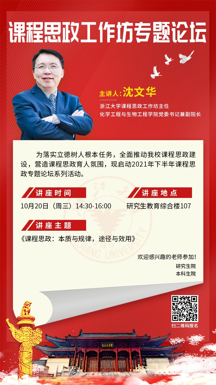主讲人:校级课程思政工作坊主任 化学工程与生物工程学院党委书记兼副院长 沈文华