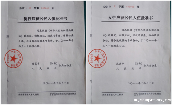 退役大学生士兵计划需上传入伍批准书及退出现役证。范例如下: