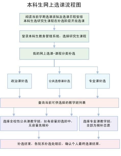 | 补(退)选阶段 | | 可补选还有名额的课程;已满额的课程可先候补,公共课等有人退选后按先后顺序自动补选。 |