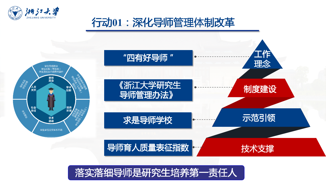 7月29日,全国研究生教育会议召开,习近平总书记对研究生教育作出重要指示、李克强总理作出批示。为深入贯彻落实中央领导同志重要指示、批示精神和十九届五中全会精神、总书记关于教育系列讲话和全国研究生教育会议精神,11月26日,伟德首页官网下载研究生教育工作会议顺利召开,以严格“立德树人,提高质量,服务需求,追求卓越”一条主线、明确“优化科教协同育人体系,产教融合培养模式”双轮驱动、把握“认清国际态势、把牢国家方针、结合社情校情”三类角度、贯通“学校主导-院系自主-导师引领-学生交互”四个层面,全面统筹谋划制定研究生教育“十四五”规划,于12月起开展研究生教育大讨论,提出“卓越研究生教育十大行动”,动员全校上下达成思想共识,形成行动合力,为新时代研究生教育发展提供“浙大方案”。