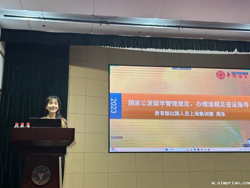 然后,教育部出国人员上海集训部周乐为大家详细解读了公派留学派出手续办理流程,包括国家公派出国留学服务体系、国家公派出国留学派出实务、部分国家签证办理指导等。答疑环节,现场学生踊跃提问,周乐对同学们关注的问题耐心地一一进行了解答。