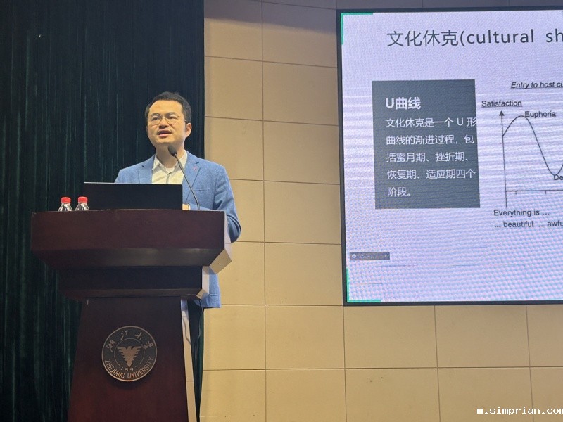 之后,外国语学院“百人计划”研究员庄玮做了题为跨文化交际交流与挑战应对的主题报告。庄玮表示,当同学们跨出国门时,都将面临文化差异、文化冲突和文化适应、文化自信的难题,在跨文化交际中要采用多元文化主义视角,充分理解和尊重文化间的差异,在自由对话和平等欣赏中提升跨文化交流的能力。