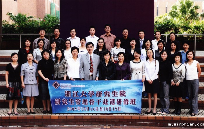 In order to improve the graduate education management, the graduate school and the organization department of the university party committee provided a 6-day training for the graduate management elites in Hong Kong Polytechnic University. This training lasted until October 19th.2008. The training class, led by Vice Department Chief of the graduate management office Xiaoli Jiang, comprised 30 trainees. Most of them are the experienced graduate education section chief from different colleges. The training courses contained interactive lectures, on-the-spot investigation, experience sharing, etc. After the training our university's graduate management elites were well informed of the characteristic of Hong Kong's advanced education and the management system. This training received full support from the organization department of the university party committee, the graduate school and Zhejiang University-Hong Kong Polytechnic University International Business Training Center.