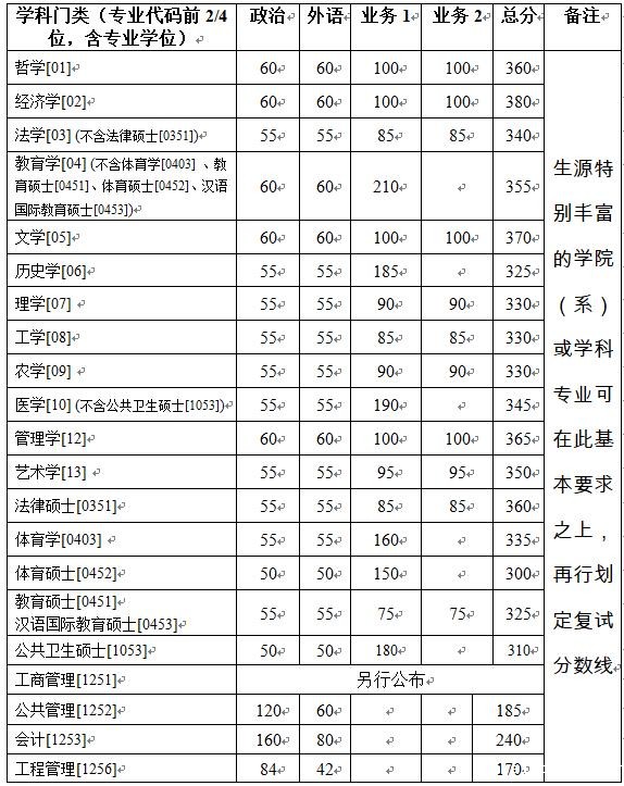 (五)国家少数民族高层次骨干人才培养计划考生同时满足以下成绩要求的考生可参加复试: