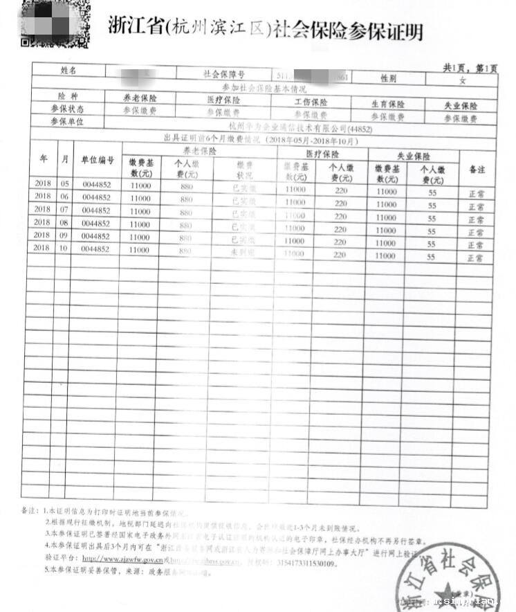非杭州户籍往届考生在本考点考试需要提供7-11月连续三个月杭州市社保缴纳证明。范例如下: