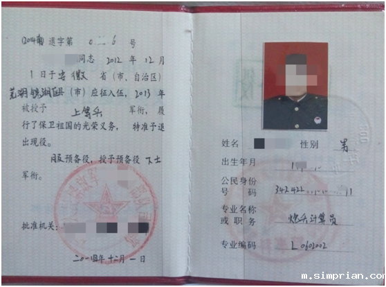 退役大学生士兵计划需上传入伍批准书及退出现役证。范例如下: